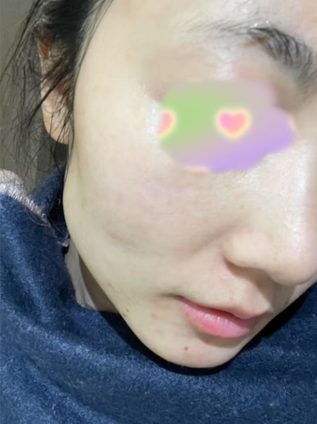 刚喝饱水的皮肤,立马从哑光变水光,而且看起来细嫩了很多,最明显的就是脸上的鸡皮消下去了,肤色也比之前明显提亮了。