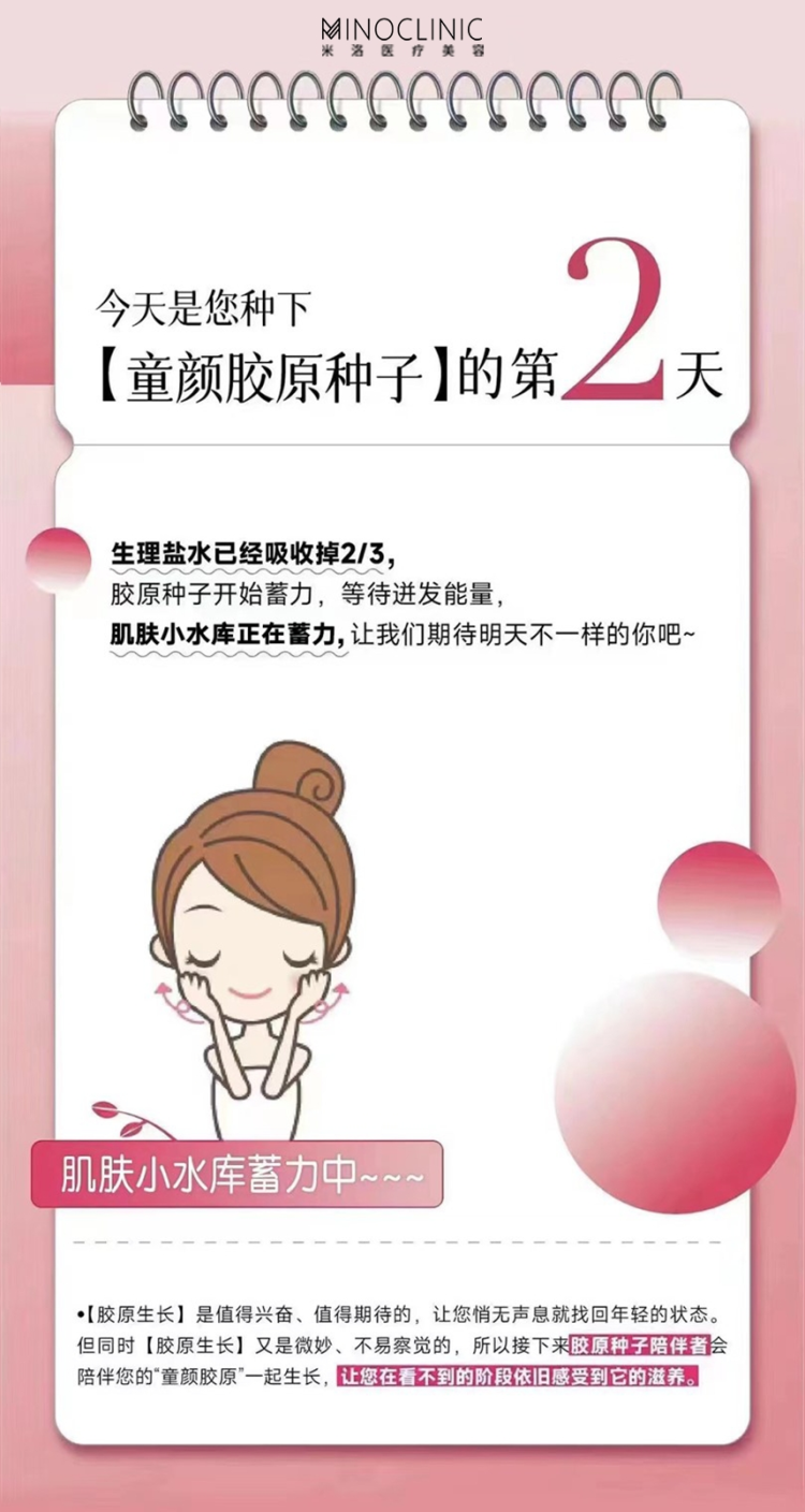生理盐水已经吸收掉2/3,胶原种子开始蓄力,等待迸发能量,肌肤小水库正在蓄力,让我们期待明天不一样的你吧~