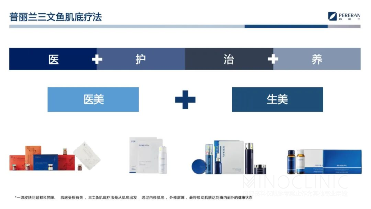 “医+护”主要指医美的术中治疗和术后修护。在术中治疗上,普丽兰深入研究敏感肌发病机制,从肌底的根源性出发去解决皮肤敏感问题,并根据求美者更细分的护肤需求,通过保湿再生、美白再生、修复再生和去皱再生这四类模式进行针对性治疗。
