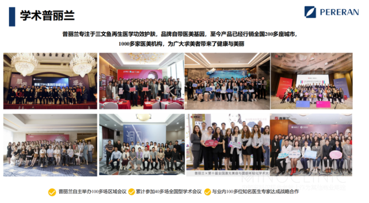 在渠道上的推广,普丽兰PDRN在医疗美容、再生医疗、传统医疗领域都有丰富应用,并与国内多家机构进行合作,目前其产品已覆盖全国超30多个省,200多个城市,2000多家医疗美容机构。